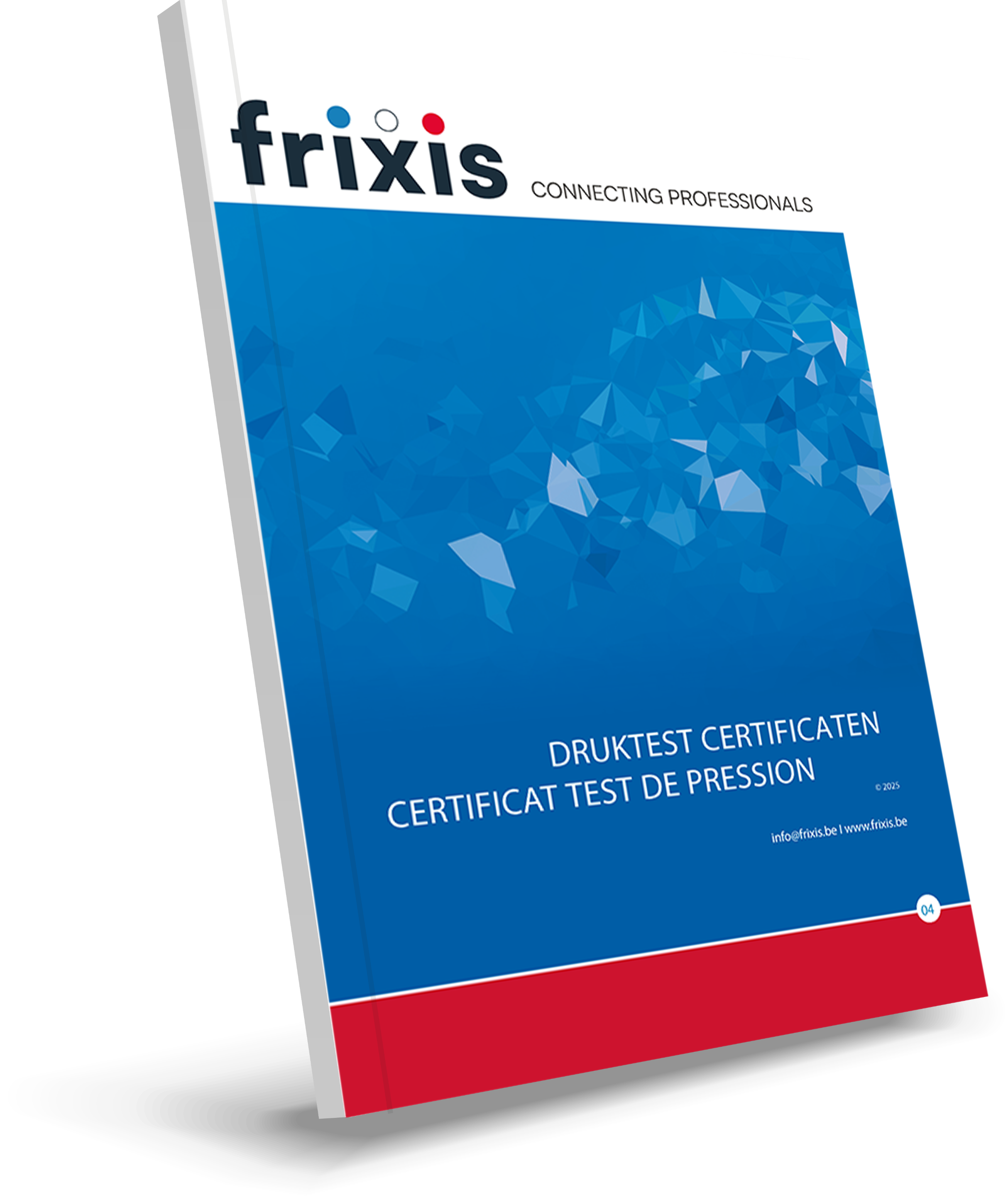 Les certificats type d'Frixis pour les test de pression ont été adaptés à la législation européenne en vigueur et à celles des 3 régions. Ces certificats type ont egalement été approuvés et homologués par les trois agences gouvernementales régionales.