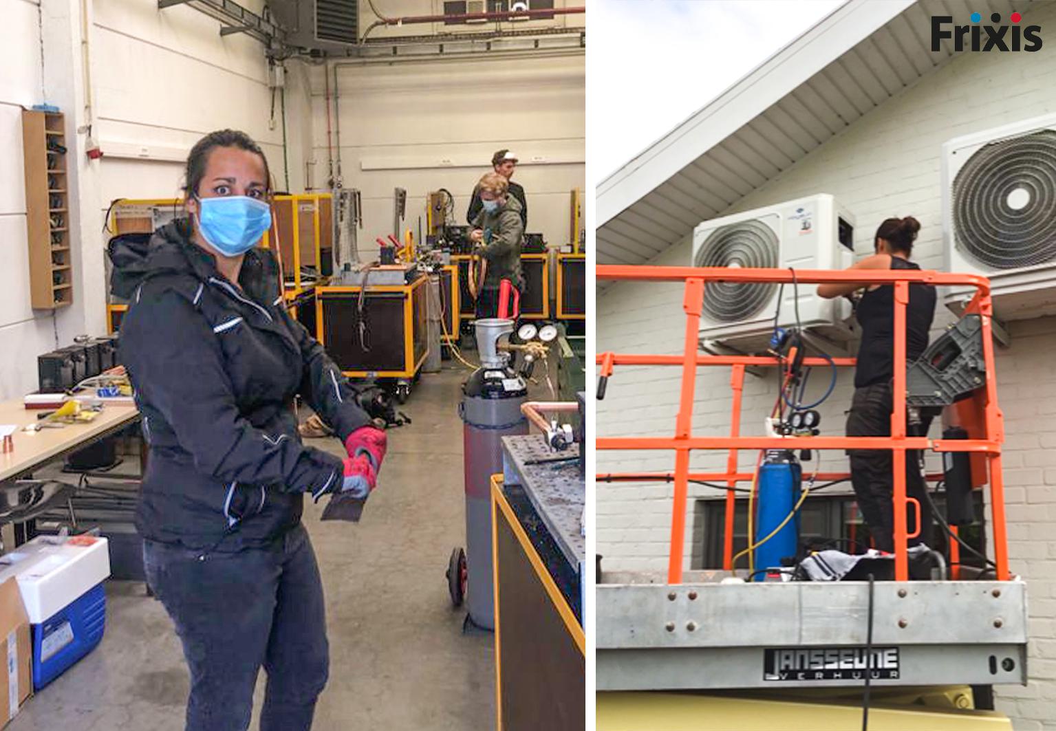 Eerst was ik koelmonteur, dan behaalde ik de certificering koeltechniek categorie 1. Ik sloot het jaar af met een diploma elektriciteit, bedrijfsbeheer, werken op hoogte en KOELTECHNIEK. Ik was zo fier als een gieter. Daarna sloot ik ons bedrijf aan bij Frixis en liet ik het erkennen tot koeltechnisch bedrijf. Ik vind het heerlijk om samen te werken met mijn man. Ik heb ondertussen al heel wat installaties kunnen plaatsen, maar voor mij was het nog niet voldoende. Ik ben zo gebeten door het koelvirus dat ik er maar niet genoeg van kan krijgen. Ik blijf gericht zoeken om mezelf te ontwikkelen. Ik ben in 2020 gestart met de opleiding airco- en energiedeskundige en kan ondertussen met veel trots ook zeggen dat ik er in geslaagd ben om dit diploma te behalen. Ik mag dus voortaan ook installaties groter dan 12 kw keuren.