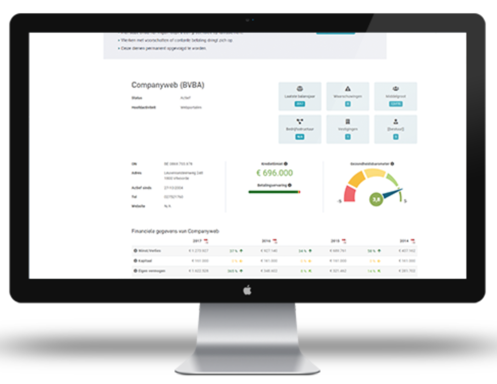 Companyweb is een specialist op het vlak van bedrijfsinformatie in België. Het geeft u steeds relevante en up-to-date informatie over elk bedrijf in België. Companyweb bundelt alle relevante informatie in een gezondheidsbarometer. Een eenvoudige, visuele indicator die u in één oogopslag toont hoe een bedrijf ervoor staat.